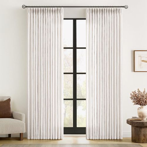 MIULEE Pinch Pleated Linen Curtains 🏠 elegant and cozy window treatment. 90" long, 2 panels, memory-trained pinch pleats with hooks—perfect for living rooms or bedrooms, light-filtering natural ivory cream 💖🌿.
