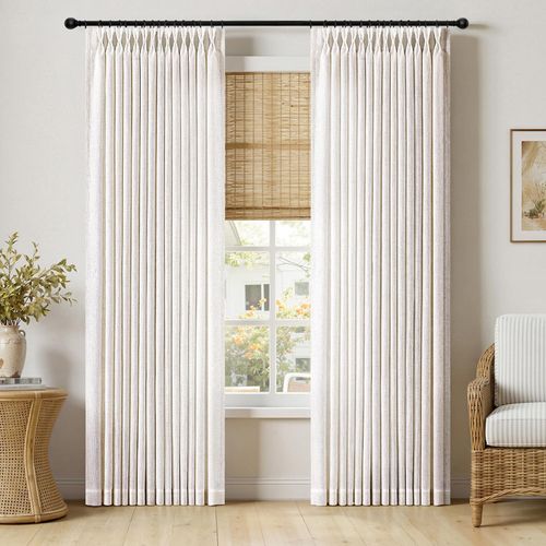 MIULEE Pinch Pleated Thick Linen Curtains bring elegant, natural charm to any room 🏡 90-inch length, 2 panels, memory-trained pleats with hooks, perfect for living room or bedroom 🪟🌿