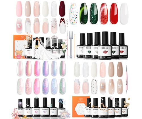 Modelones Gel Nail Polish Set is your go-to kit for stunning DIY manicures. 💅 This collection have six milky shades, versatile nail stickers, and a precision liner brush for professional art.