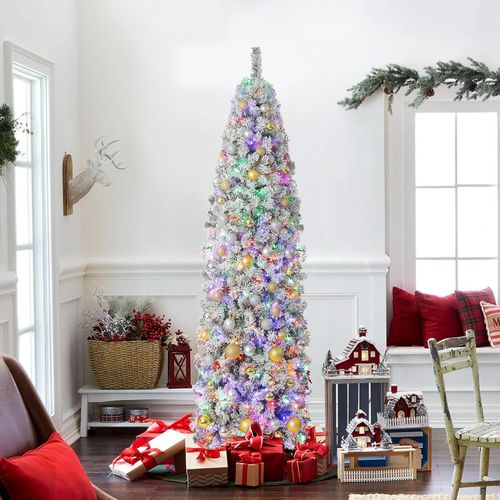 Light up your holidays! 🌟 MVSRWLL 6ft Prelit Slim Christmas Tree—multi-color magic in a small space! 🎄
