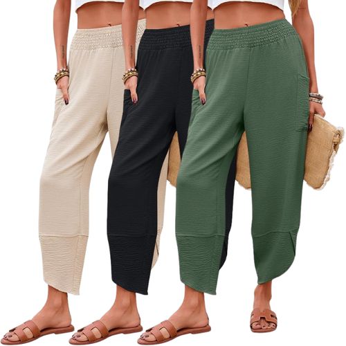Newchoice \Palazzo Capri Pants are comfy, stylish wide-leg harem pants perfect for casual vacations. 🌴 Smocked waist, cropped length, with pockets. 👖