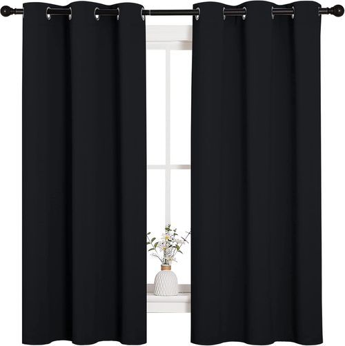 NICETOWN Pitch Black Blackout Curtains! 🖤 Thermal insulated fabric, light-blocking panels, and grommet design for bedroom comfort! 🛏️