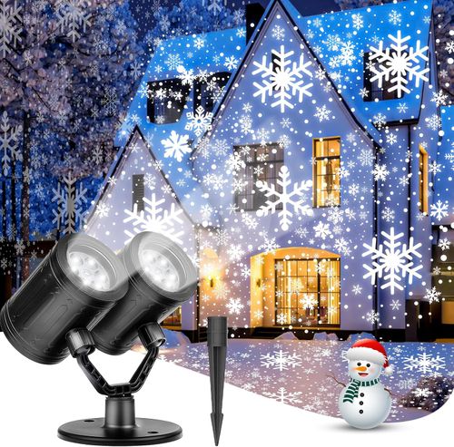 Nielfoi 2025 Snowflake Projector Lights create a magical winter scene. ❄️ Dual-head design, waterproof timer, and dynamic LED snowfall. 🎄