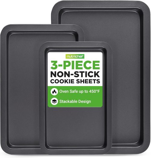 Bake like a pro! 🍪 NutriChef 3-Piece Non-Stick Cookie Sheets – heavy-duty, PFOS/PFOA-free, perfect for ovens & toasters. 🍪