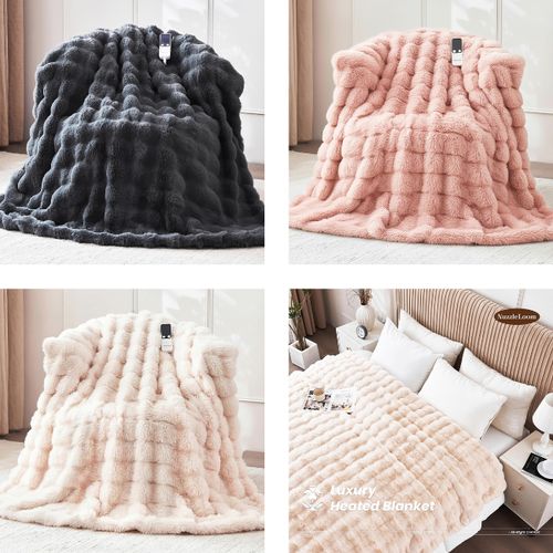 NuzzleLoom Heated Blanket Twin elevates cozy nights. 🛌 Ultra-soft faux fur, five heat levels, auto shut-off for safe warmth everywhere nightly. 🔥❄️