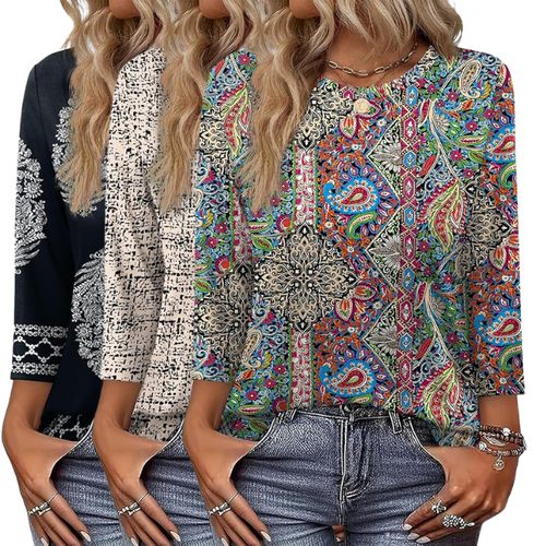 OFEEFAN 3/4 Sleeve Tops blend dressy and casual style 👚 crew neck, loose fit, and perfect for everyday chic outfits 🌸💼.