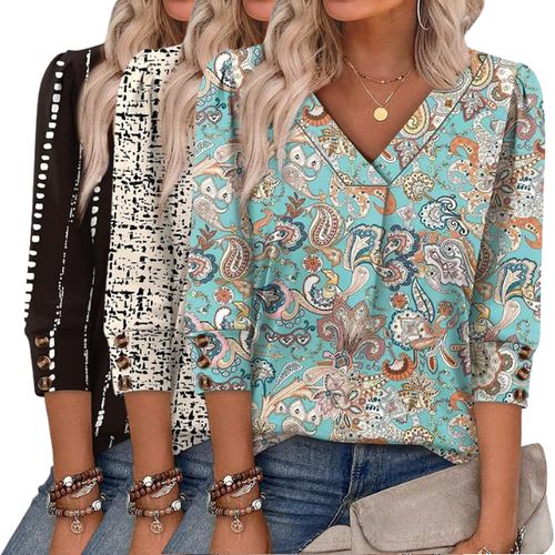 OFEEFAN 3/4 Sleeve V-Neck Top! 🌸Flattering fit that’s perfect for work, outings, or everyday chic looks! 💖
