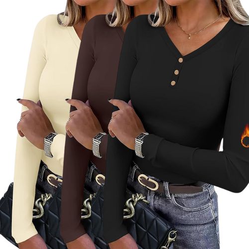 OFEEFAN Long Sleeve Thermal Shirts keep you warm and stylish ❄️💖 Soft fleece lining, slim-fit design, and cute button details! 👚