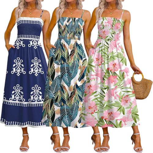 OFEEFAN Maxi Dress, Spaghetti Strap & Smocked Fit 🌸☀️ Casual boho style, pockets included, perfect for spring, summer, or beach days 🏖️💖👗