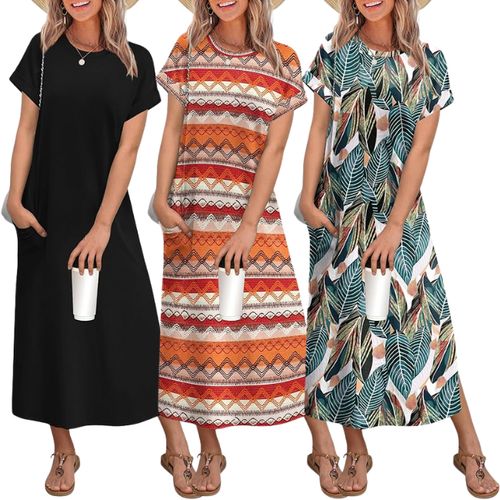 OFEEFAN Maxi Dresses deliver effortless comfort and style 🌸👗 Short sleeves, handy pockets, travel-ready casual long T-shirt dress vacation wear ☀️🏖️