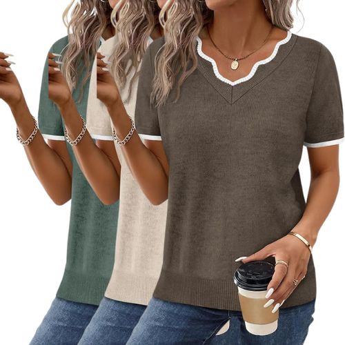 OFEEFAN Short Sleeve Sweater 👚 Lightweight V-neck design, stylish and versatile—perfect for business casual outfits, layering, or everyday fashion wear.