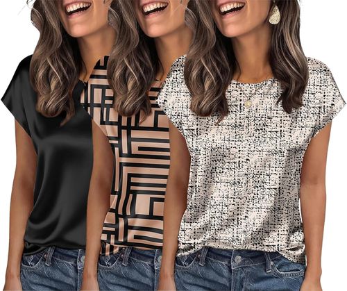 OFEEFAN Silk Satin Top! 👚 Smooth satin finish, cap short sleeves, perfect business casual and chic summer fashion looks! 💖☀️