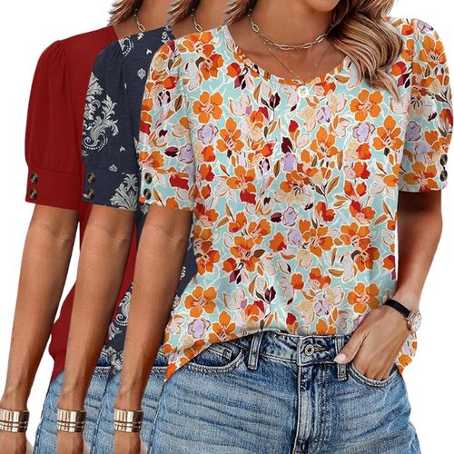 OFEEFAN Summer Tops Cap Sleeve T Shirts! 👚 Soft fabric, cute button details, and flattering fit for casual or dressy looks! ☀️