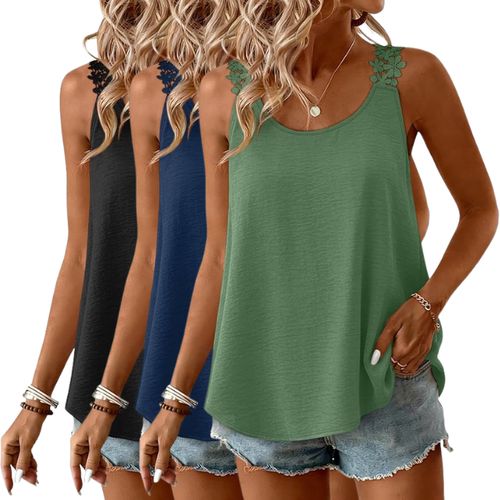OFEEFAN Tank Tops delivers breezy summer style ☀️👚.Loose fit, crew neck, sleeveless with lace straps and curved hem 🌸