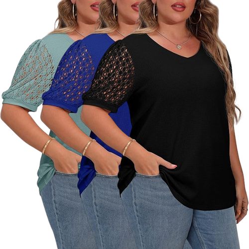 Summer ready? 🌸 Rock this OLRIK Plus Size Waffle Knit Top! Comfy, cute & lace-sleeved perfection for every sunny day! 👚
