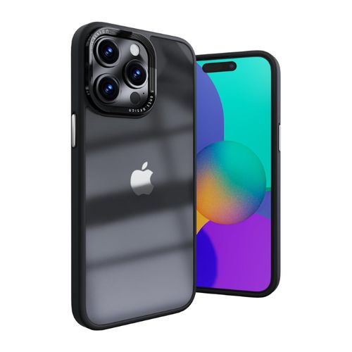 ONES for iPhone 15 Pro Max Slim Case 📱🖤 Clear hybrid case with chrome buttons and black silicone bumper. Shockproof, military-grade protection, anti-yellowing, and slim transparent design