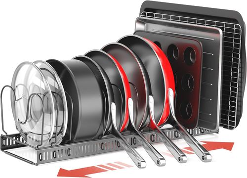 ORDORA Pots and Pans Organizer! 🍳 12 adjustable dividers, and stores cookware, cookie sheets, and cutting boards. 📏🔪