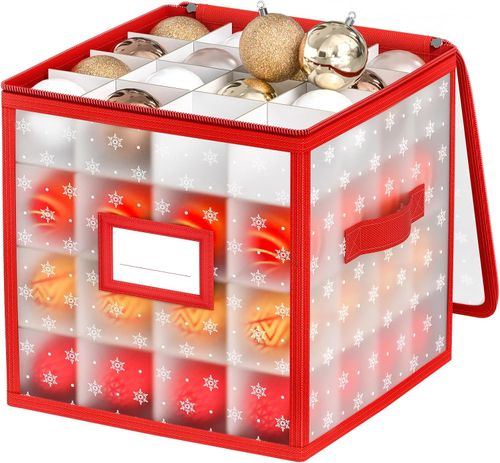 Ornament Storage Box 🎄 keeps holiday decorations safe and organized. Holds 64 balls, adjustable dividers, frosted design, and easy sorting in one pack 🏠🎁❄️.