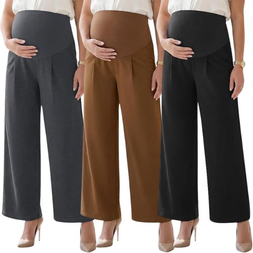 OUGES Stretchy Maternity Pants deliver comfort and style 🤰 Over-belly support, wide-leg fit, handy pockets for busy workdays 👖💼