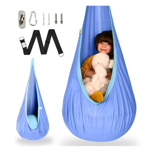 OUTREE Kids Pod Swing Seat offers cozy, calming fun for children indoors or outdoors 💜🌈. Soft cotton, sensory-friendly design, perfect macaron-purple hangout spot 🪁.