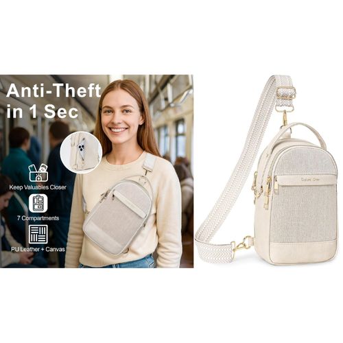PACKISM Sling Bag offers stylish hands-free travel. 🎒 Canvas PU leather, seven pockets, crossbody fanny pack design everyday use.