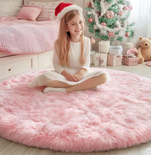 PAGISOFE Pink Round Rug 🌸 adds cozy charm to any girls’ room! 4ft fluffy shaggy circle, soft plush texture, perfect for bedroom, nursery, or cute home decor 💖🛋️🏡.