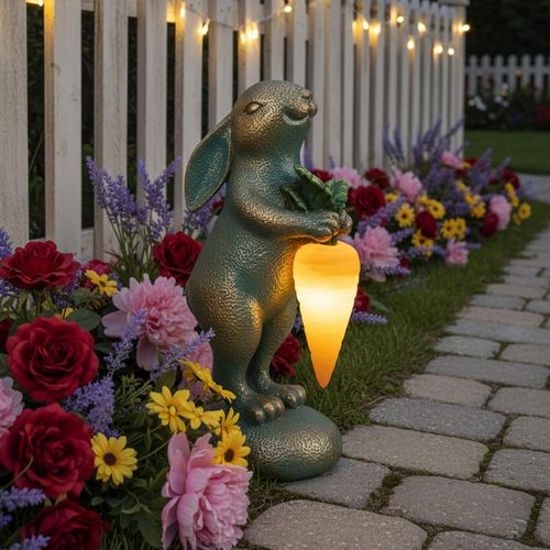 PETAFLOP Solar Garden Rabbit Statue 🐇 Solar-powered Easter bunny figurine, perfect for patio, yard, balcony, or garden—great gift for mom, grandma, or housewarming 🌿🏡💖.