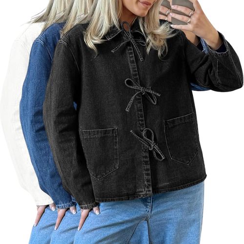 PLNOTME Jean Jacket elevates your fall fashion game effortlessly. 🍁 tie-front design, cozy long sleeves, and handy pockets! ✨💙