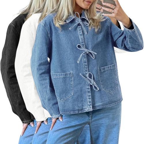 PLNOTME Jean Jacket Tie Front Denim Shacket is stylish and versatile πlong sleeves, pockets, and perfect for fall casual outfits ππ§₯.