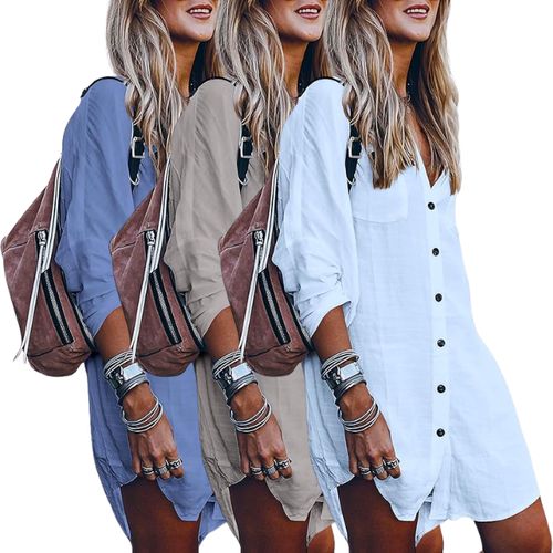 POGTMM Swimsuit Cover Up offers breezy, stylish beachwear for summer days. 🏖️👗 button-down design, mini dress length, and easy bikini layering. ☀️💖