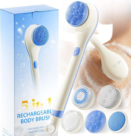 POPCHOSE Electric Body Brush! 🚿 Waterproof rechargeable design, 5 interchangeable heads, 2 speeds for cleansing exfoliating and relaxing massage! 💆♀️🛁