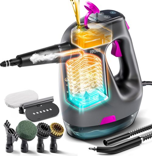 POPCHOSE Steam Cleaner with Detergent Dispenser simplifies home maintenance. 💨 This portable tool offers rapid heating, removable tanks, and versatility. 🏠