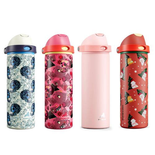 POWCAN 24oz Christmas Insulated Water Bottle keeps drinks hot or cold in style! ❄️ Leakproof, dual spout, and cupholder-friendly! 🚗