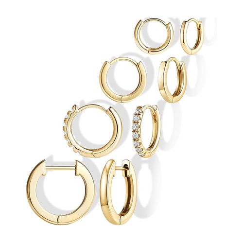 Poxtex Small Gold Huggie Hoop Earrings Set 💛. Hypoallergenic 14K-plated lightweight stackable minis for multiple piercings cute dainty 🎄