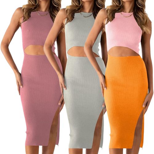 PRETTYGARDEN Summer Midi Bodycon Dresses πβοΈ are perfect for casual chic vibes! Sleeveless, side-slit, and breathable knit fabric for comfort, style, and summer outings πΈπποΈ