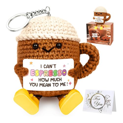 Pudthin 100% Handmade Positive Crochet Gift ☕💖 is a cute smiley coffee mug décor for any desk. 🎁 Soft, unique, and thoughtful—perfect birthday or Christmas gift for coffee lovers and coworkers!