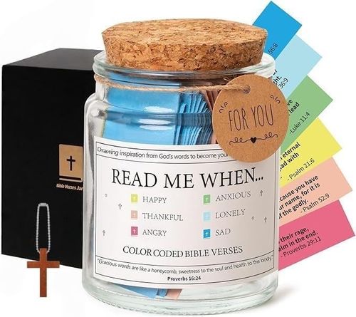 Daily encouragement in a jar! ✨ The QISITAUP Bible Verse Jar comes with 90 waterproof scripture cards & a wooden cross. 🙏