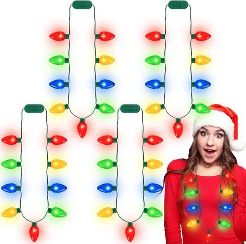 QZYL 4pcs Light Up Christmas Necklaces add festive sparkle to any party. 9 LED bulbs, 3 flash modes, and perfect for holiday fun. 🎄💡