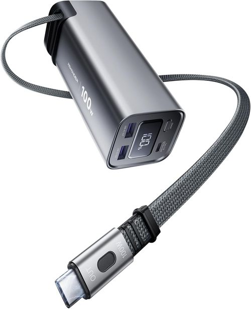 REWONDER 100W Retractable Power Bank keeps devices charged anywhere. 20,000mAh, fast charging, built-in Type-C & USB ports. ⚡🔋📱