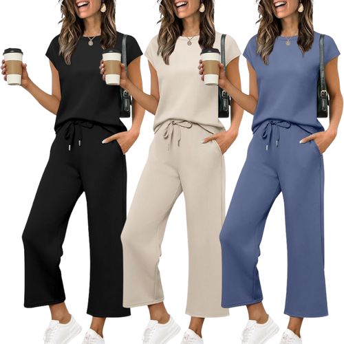 SAMPEEL 2-Piece Set 🌴keeps summer vacation style effortless. Cap-sleeve top with matching lounge bottoms, perfect for beach days or casual outings 👚💖👖.