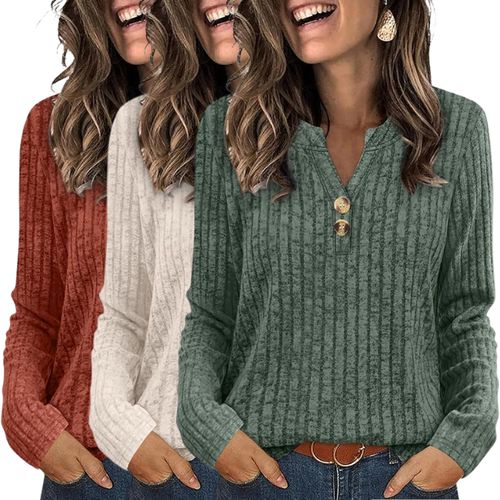 SAMPEEL Lightweight Sweater 🍂💖 adds cozy charm to fall looks! V-neck style, button detail, and soft long sleeves 🧶.