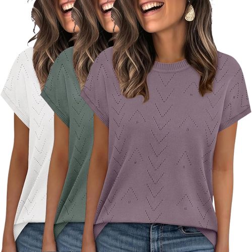 SAMPEEL Short Sleeve Sweaters summer outfits 👗Crewneck, lightweight knit, versatile for beach or business casual wear comfort ☀️🏖️