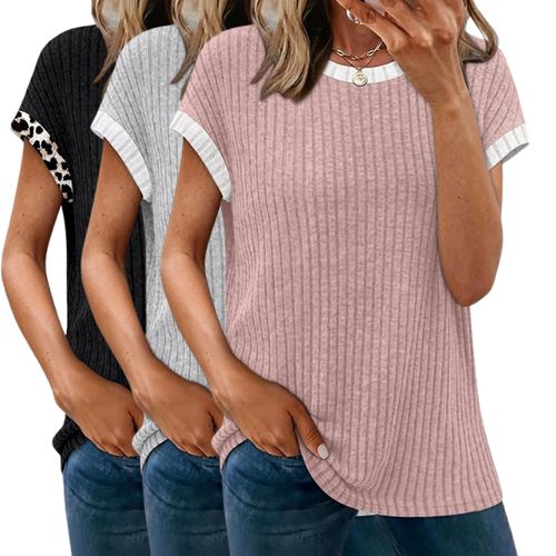 SAMPEEL Short Sleeve Tops 🤍 Lightweight sweater feel, loose fit, and easy-to-style design—perfect for spring to summer. Dress it up or keep it casual for everyday comfort 🌸