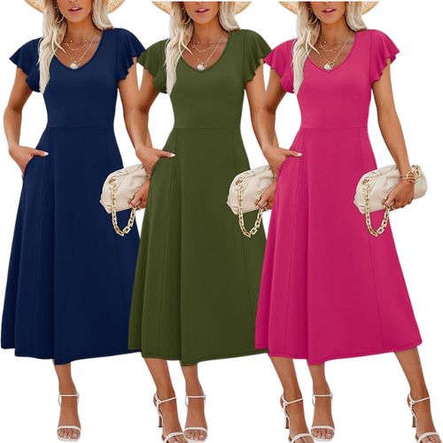 SAMPEEL Summer Dress 🌺 brings elegant, classy style for warm days. Ruffle sleeves, tie-back detail, and perfect midi-maxi flow for outings.