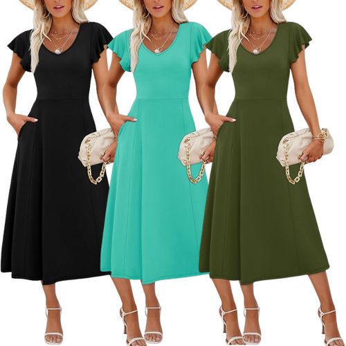 SAMPEEL Summer Dresses Midi Maxi Dress brings effortless elegance and comfort! 👗 Ruffle sleeves, flowy fit, and chic classy style. 💃