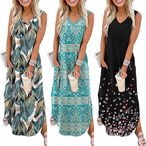Sampeel Summer Maxi Dress 🌴👗 perfect for beach vacations! Lightweight, flowy design with convenient pockets, ideal for casual summer outings.