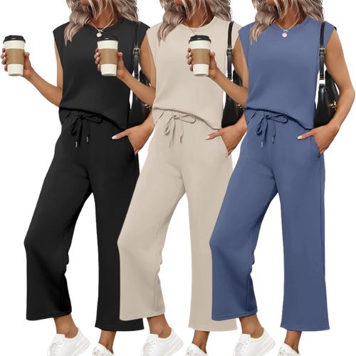 SAMPEEL Two Piece Sets ☀️ make travel style effortless! Casual summer lounge set with wide-leg crop pants, comfy fit, and perfect for vacation or everyday chic looks 💖👚👜.
