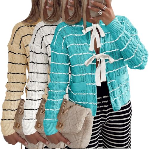 Saodimallsu Cardigan Sweaters Crew Neck Top! 🧶 Cable knit design, soft texture, and perfect for layering. 💖