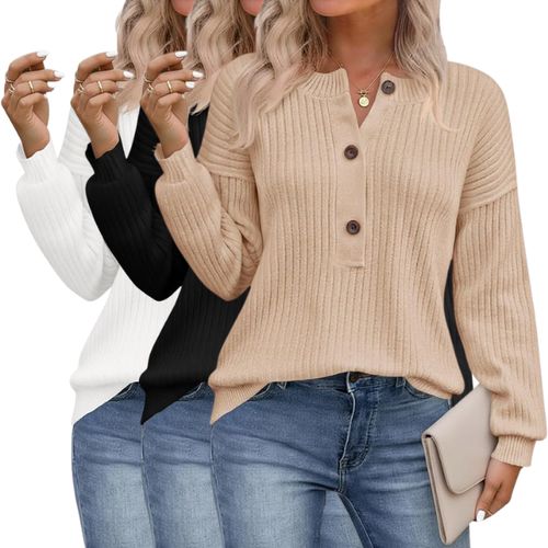 Saodimallsu Henley Sweater 🍁 blends cozy comfort with trendy style! ribbed knit fabric, button crew neck, and loose fit—perfect for casual fall days or layering 💕🧶.