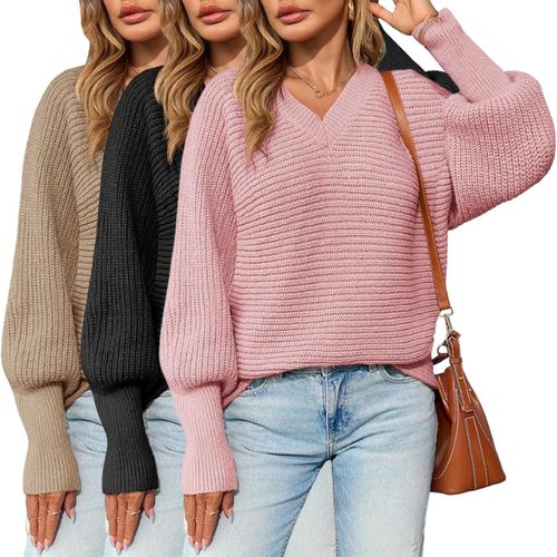 Saodimallsu V Neck Batwing Sweater 🍂 keeps you cozy and chic all season. Chunky ribbed knit, loose fit, and soft long sleeves!